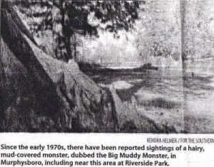 A creature being called the Murphysboro Mud Monster, or the Big Muddy Monster, was seen in Murphysboro, Illinois. It was first seen on June 25th, 1973 around midnight by Randy Needham and Judy Johnson. The couple were parked along the side of the road over looking the river. While the two were discussing whether they were going to stay or go home, Needham heard what he described as an “eagle shrieking into a microphone”. After flicking on the headlights to the car, the two were staring at a gigantic creature lumbering toward them. The two later described it as an “oversized gorilla” standing at an estimated 8 feet tall with mud-caked white hair covering its body.