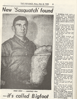 Jerry Crew was a bulldozer operator who made what is believed to be the first cast of an alleged sasquatch footprint at Bluff Creek in 1958 that subsequently gave rise to the name "bigfoot" for the bipedal creature that is believed to roam the Pacific Northwest.