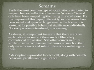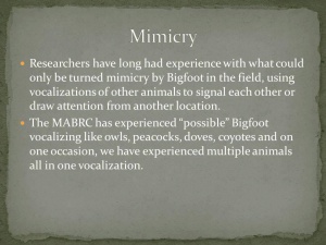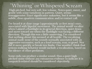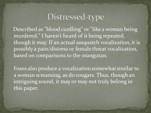 Vocalizations are any number of sounds believed to be produced by the bigfoot, such as howls, moans, growls, yells, whistles, and screams. Some sounds are believed to be warning signals, while others are thought to have various other meanings. It is thought by some that the bigfoot is able to mimic other animals, but given the lack of proof or even observation, this is pure speculation, as are many things bigfoot related.